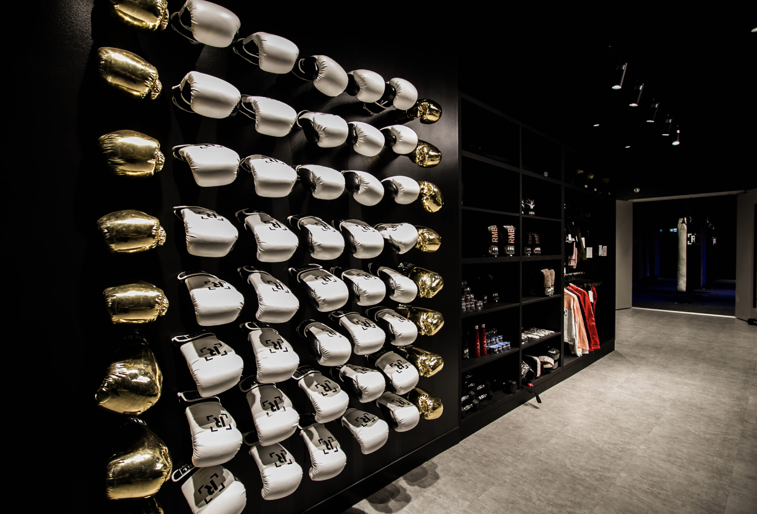 The entrance is bright and surprisingly welcoming. At the check-in desk, boxing gloves line the walls like trophies. To the left, there's a workout area for private lessons. To the right, lockers and an actual boxing ring that makes you feel like you've stumbled onto a movie set. Then there's Brad Pitt, immortalized in his Fight Club glory, staring down at you with those abs.